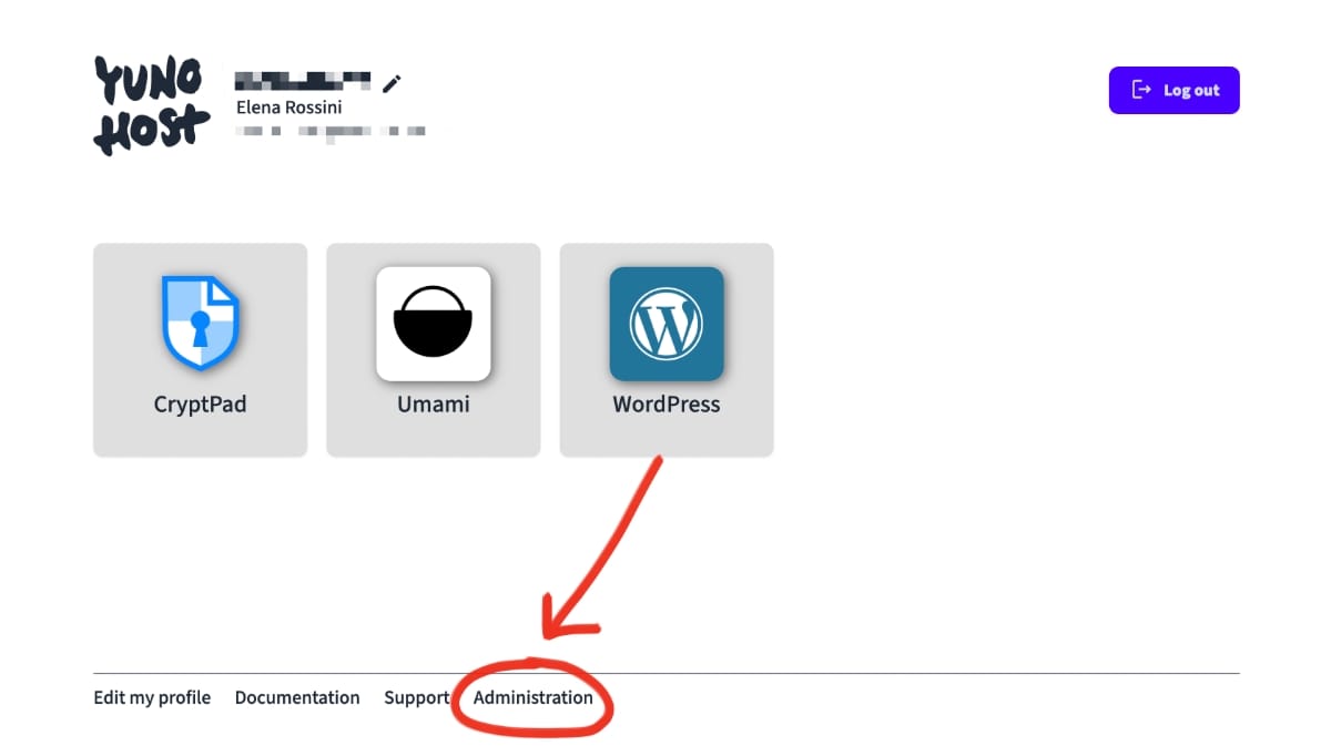 - log onto your YunoHost dashboard