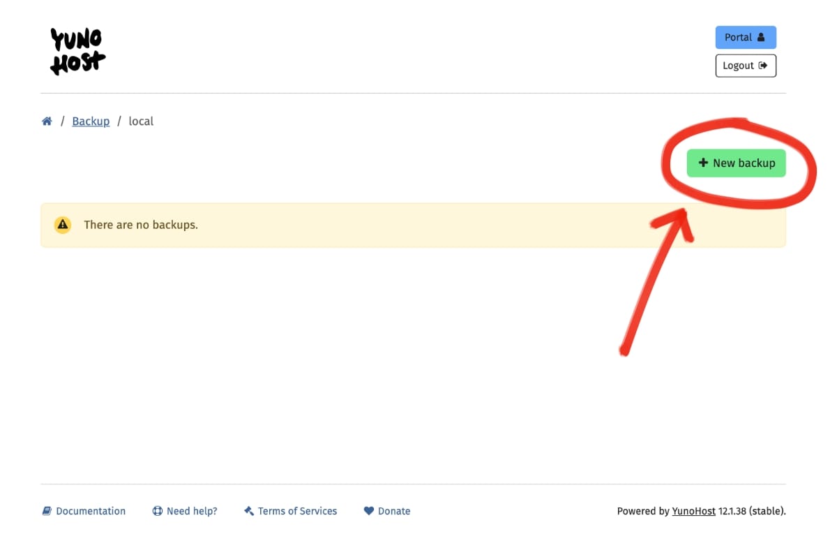 The Backup page of your YunoHost server should now look like this: