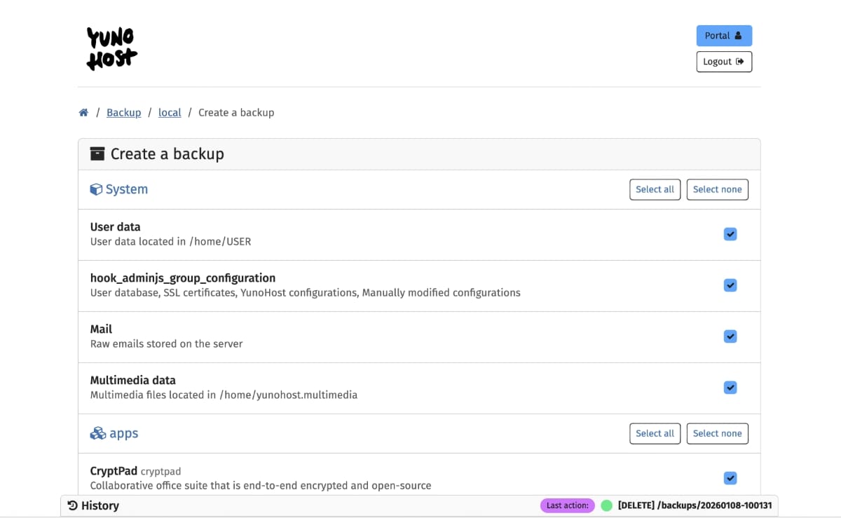 Every Monday morning, I have a little ritual: at the start of my working week, I grab a cup of coffee, log onto my YunoHost dashboard and execute a full backup. Here's how to do it:
