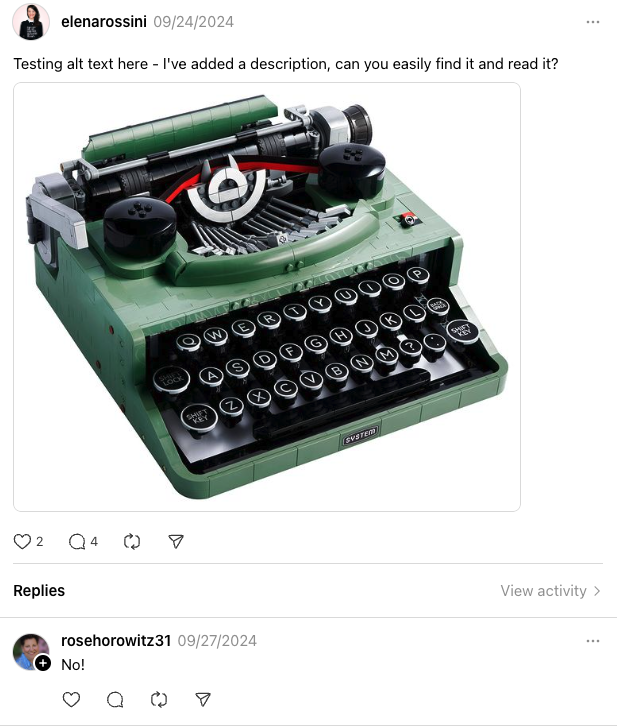 I ran an experiment and posted a photo with alt text on Threads. Thing is, I could not read the alt text description afterwards, when the post was published. I asked my followers if they could see it and most of them said no. It was so puzzling: