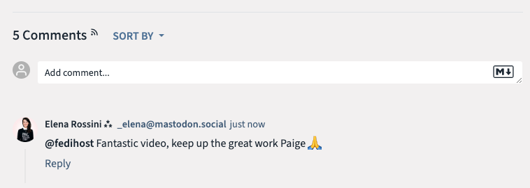 I can simply scroll down to the comments area, add my thoughts, and when I hit "Reply" my comment will immediately appear on Mastodon and PeerTube, under the video (on the whole Fediverse, actually). That’s the magic of ActivityPub.