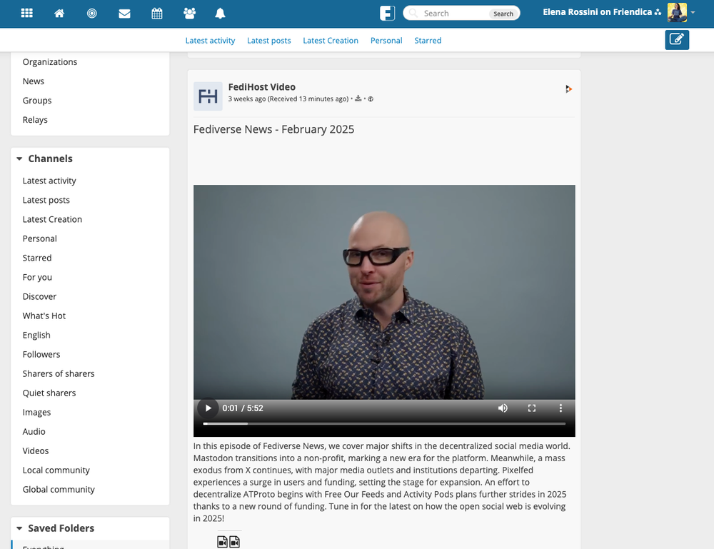 Done, I am now subscribed to FediHost’s News channel (and I could put it in a Friendica Circle if I wanted to). When FediHost publishes a new video on their channel, it would show up in my Friendica feed, where I could watch it, comment on it or like it. The magic of ActivityPub once again.