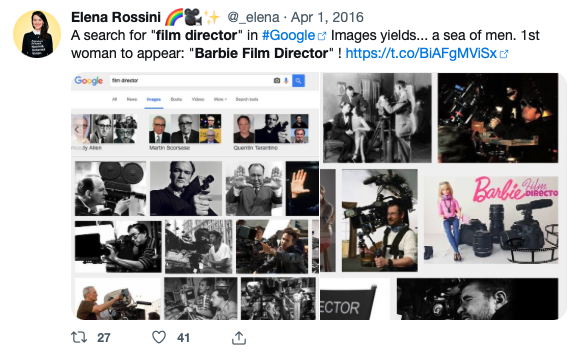Type “Filmregissör” in Google.se (Sweden) and the third photo you’ll see from the top is… Saudi director Haifaa Al-Mansour, behind the camera. She showed up in results even before legendary director Ingmar Bergman — making my jaw drop.