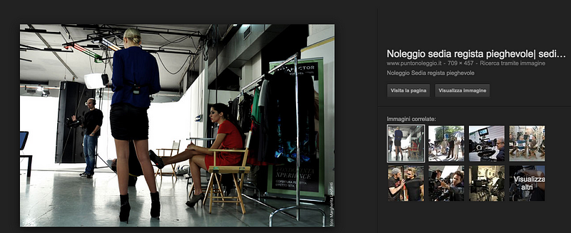 The top results for “regista” were illustrations from stock photo sites of director’s chairs, followed by photos of famous male directors: Federico Fellini, Francis Ford Coppola, Michael Bay, Quentin Tarantino.
